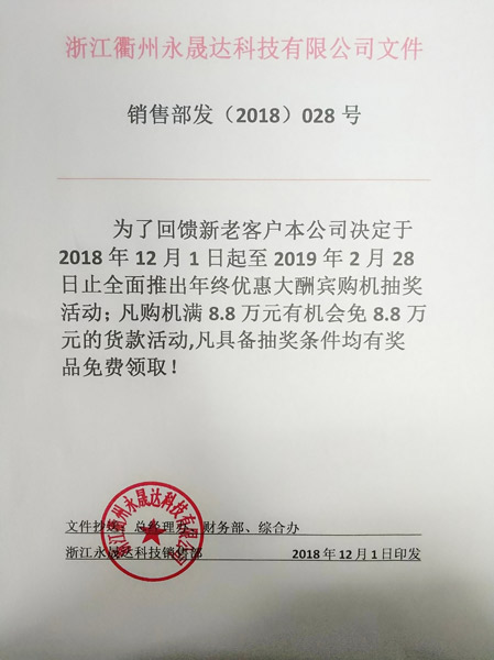 • 永晟達(dá)年終優(yōu)惠大酬賓抽獎活動,感恩回饋新老客戶!2018-11-20